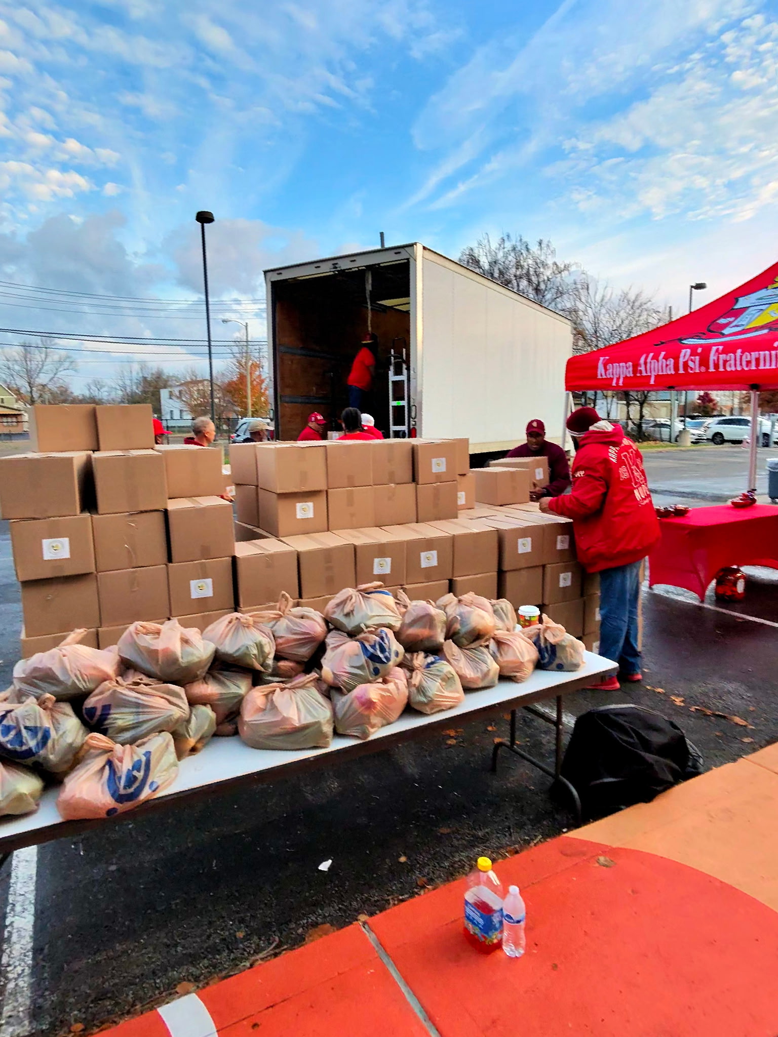 Kappa Alpha Psi brothers distributed free turkeys complete with all the fixings and dressings, ensuring several families had everything they needed for a full Thanksgiving meal.